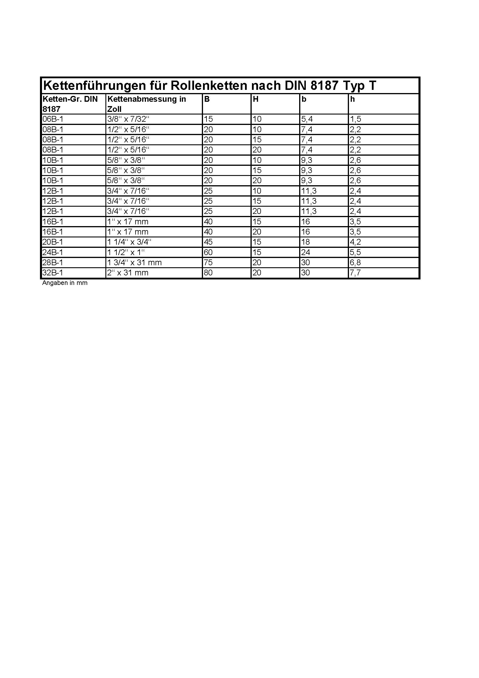 für Einfach-Rollenketten nach DIN ISO 606 ( ex DIN 8187 )